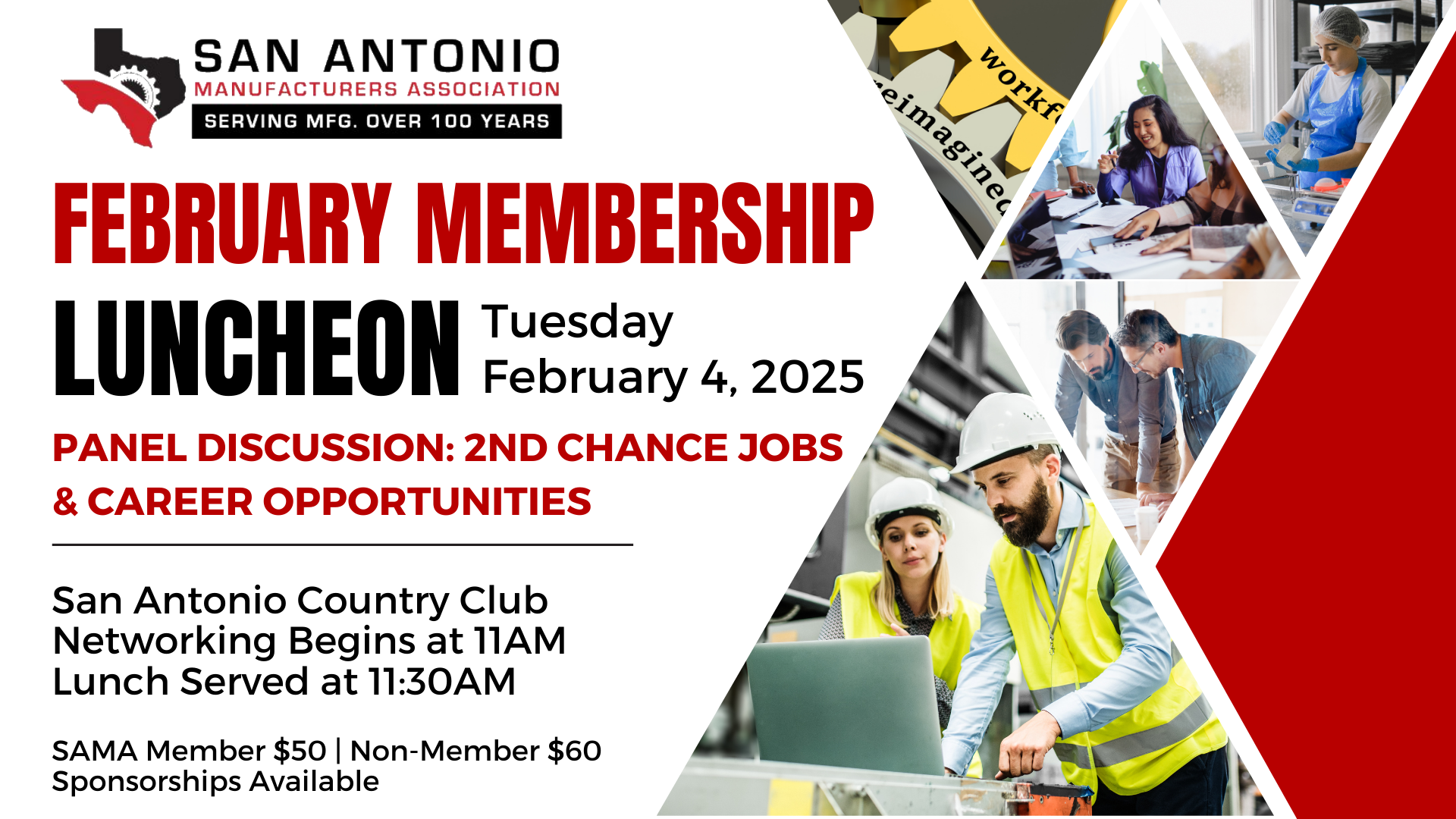 Our monthly luncheons serve as invaluable forums for fostering collaboration, knowledge exchange, and community building within our vibrant manufacturing network. These gatherings aim to bring together industry leaders, professionals, and stakeholders to discuss emerging trends, share best practices, and address common challenges faced by the manufacturing community in San Antonio. Through insightful presentations, networking opportunities, and engaging discussions, these luncheons play a crucial role in nurturing a strong and interconnected manufacturing ecosystem, ultimately contributing to the growth and success of our diverse member organizations.