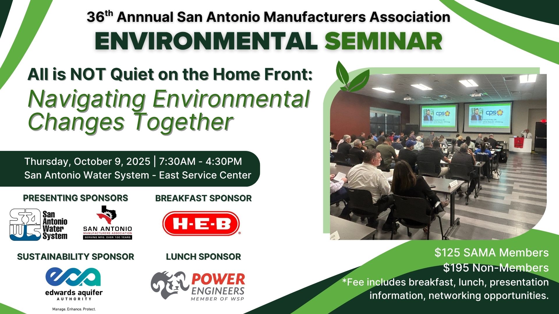 We are excited to invite you to SAMA’s 36th Annual Environmental Seminar—a pivotal event designed to equip manufacturing professionals with the knowledge and tools needed to adapt to a rapidly changing environmental landscape.